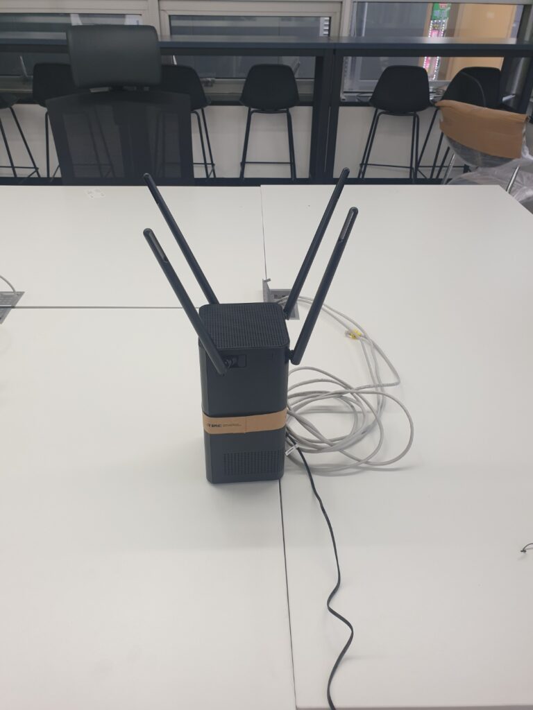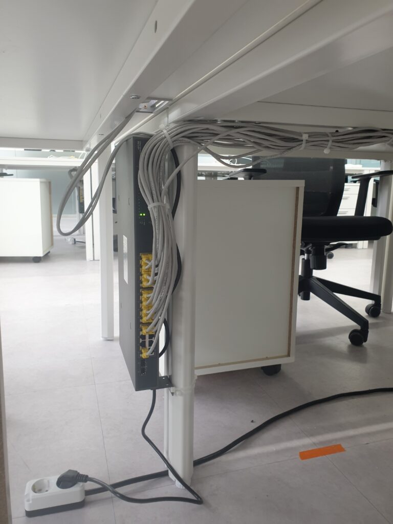 책상 밑 안보이는 곳도 꼼꼼하게 선작업을 하여 깔끔하게 작업 후 인터넷을 공유하는 허브도 움직이지 않도록 고정해 드렸습니다.