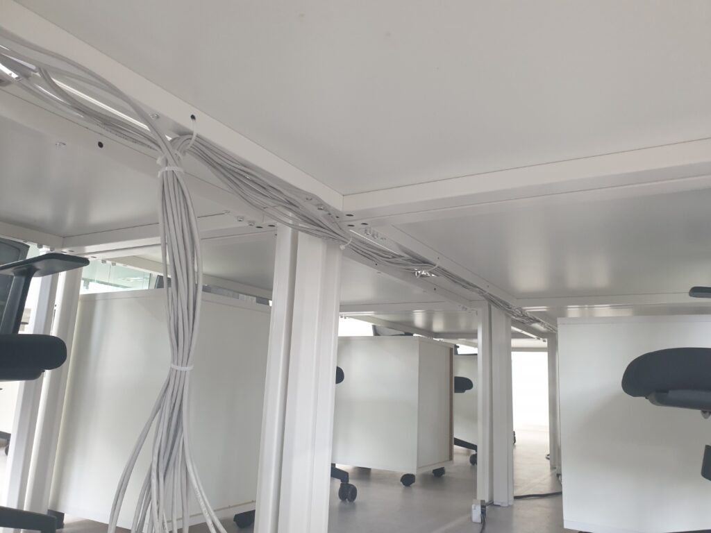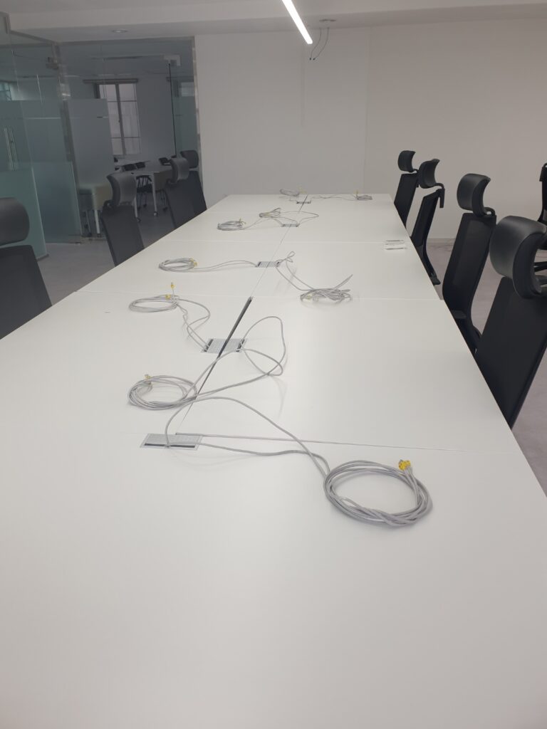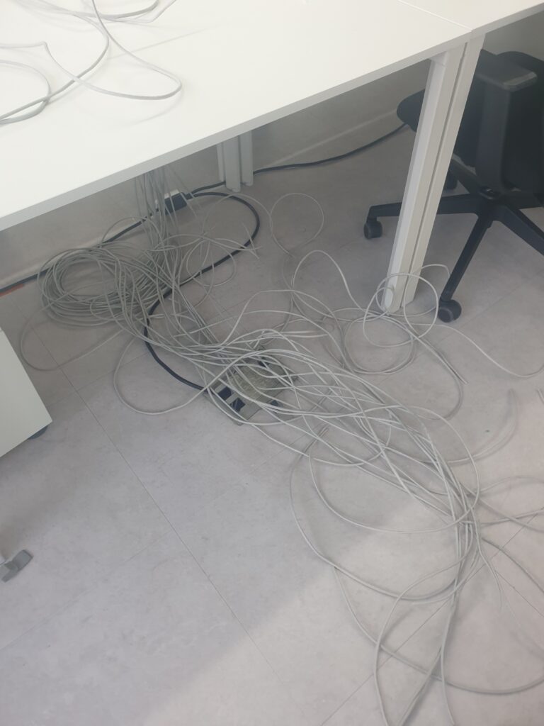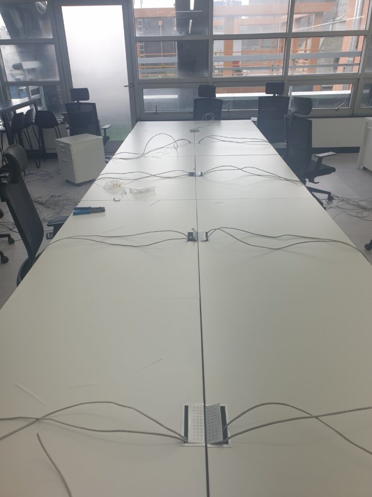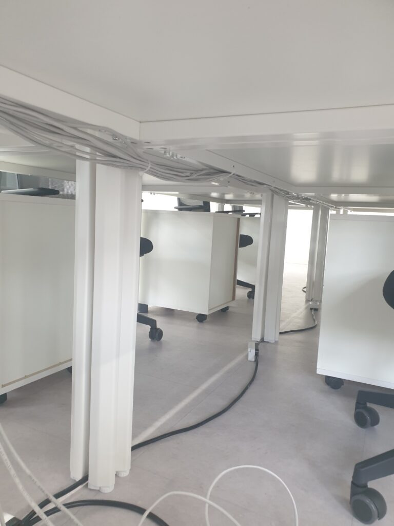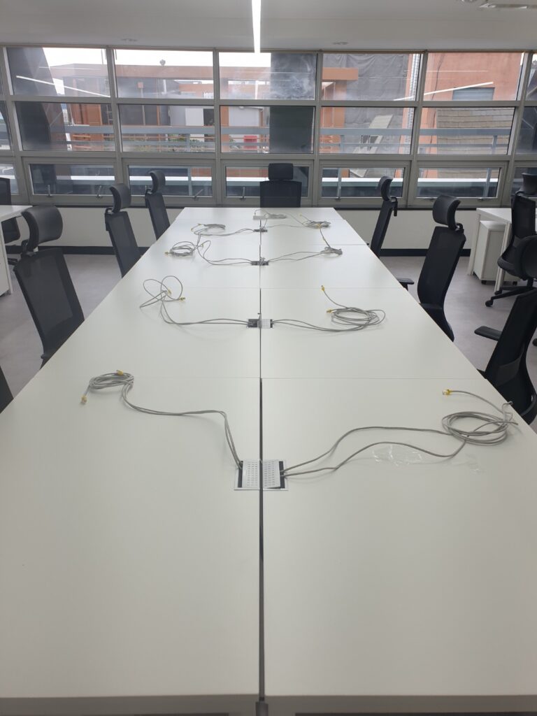 작업을 끝낸 사진입니다. 책상별로 인터넷 선을 뽑아놓아서 컴퓨터에 꽂으시면 바로 인터넷이 되도록 작업하였습니다.