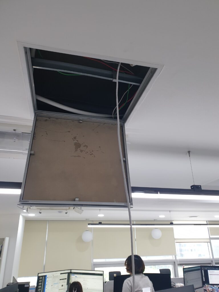 열심히 천장 작업을 하는 모습입니다. 보통 점검구를 열어서 작업할 때는 2인 1조로 작업을 많이 합니다. 혼자하기에는 너무나도 힘들거든요..